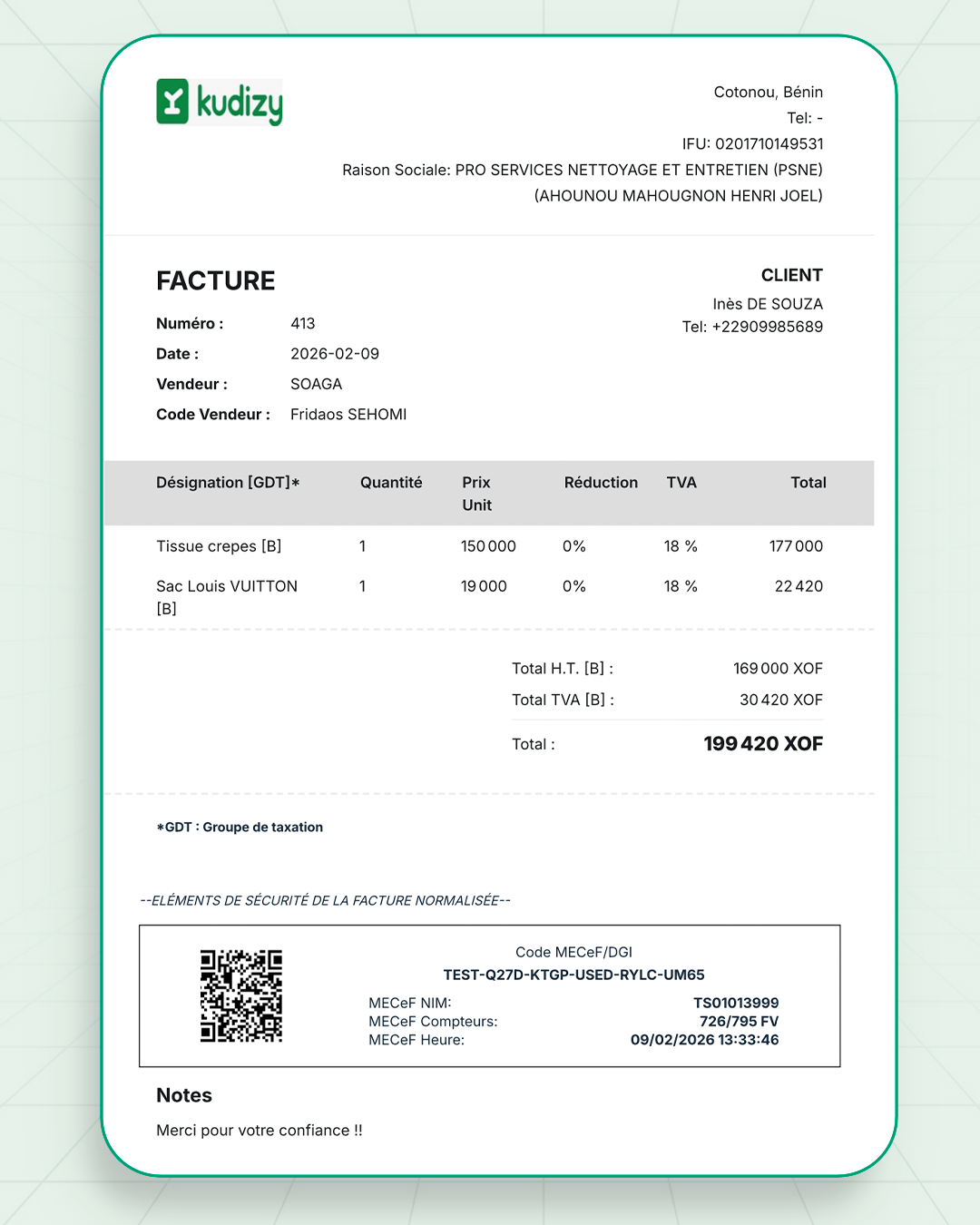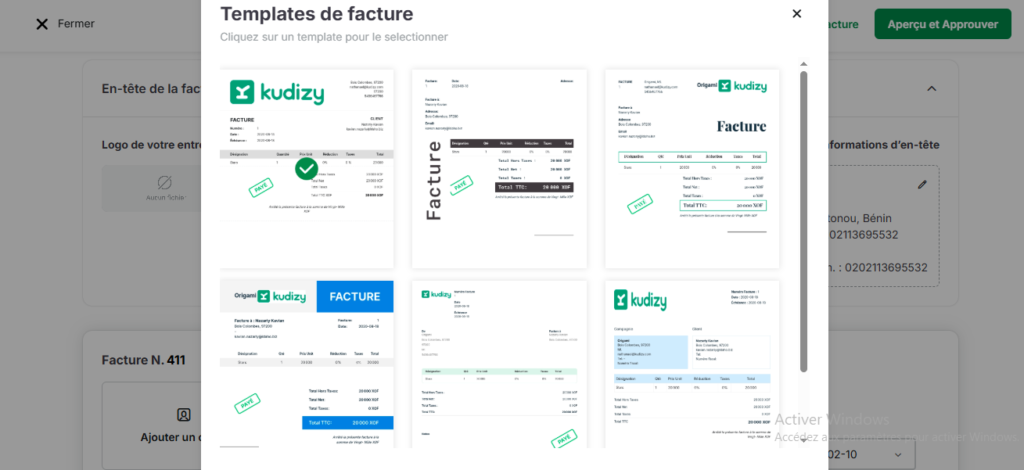 Kudizy introduit également des options absentes du cadre classique, comme la présentation professionnelle des factures, l’intégration du logo de l’entreprise et une meilleure lisibilité des documents envoyés aux clients.