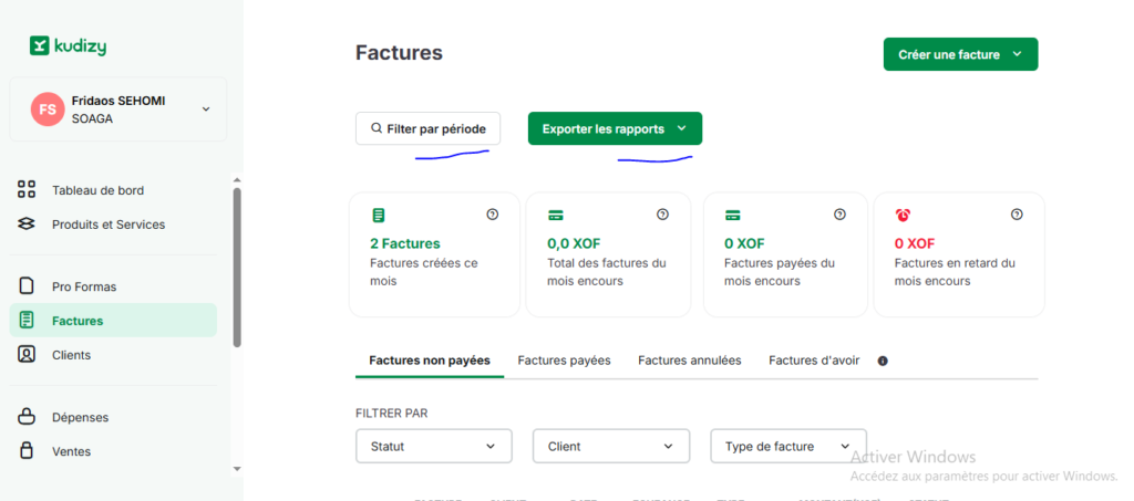 Kudizy centralise toutes les factures dans un espace unique et propose des options de filtrage par client, par statut ou par période. Il devient ainsi plus simple d’identifier les factures payées, celles en attente ou en retard. Les factures peuvent être téléchargées en PDF ou envoyées directement par email depuis la plateforme.